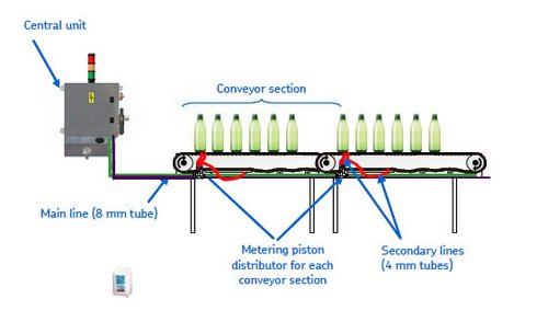 In der Nahrungs- und Genussmittelindustrie sowie bei Getränkehersteller und -abfüllern kommen hauptsächlich folgende Schmiertechnik-Komponenten zum Einsatz: